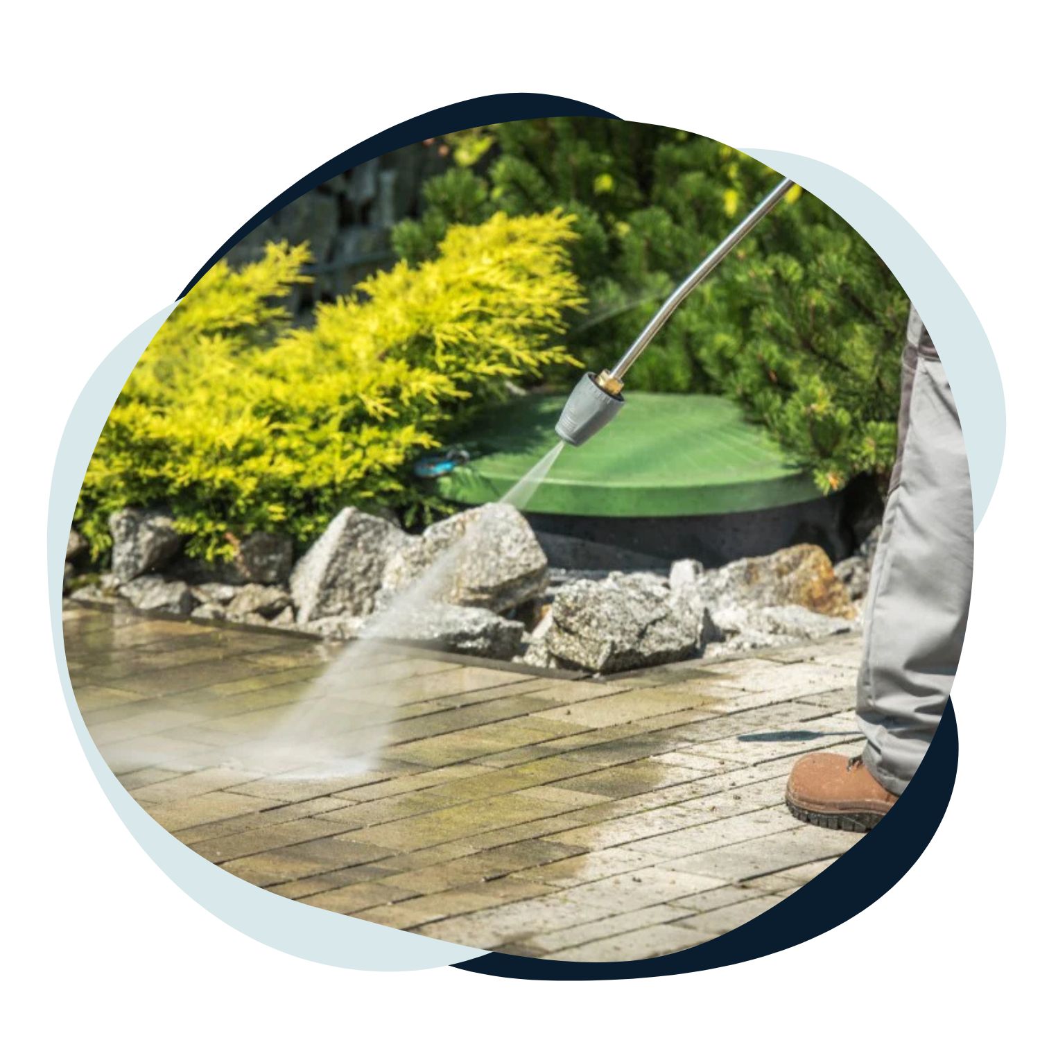 We provide comprehensive patio cleaning for all paving types using professional-grade techniques specifically calibrated for your material, whether it’s concrete, natural stone, or tiled.